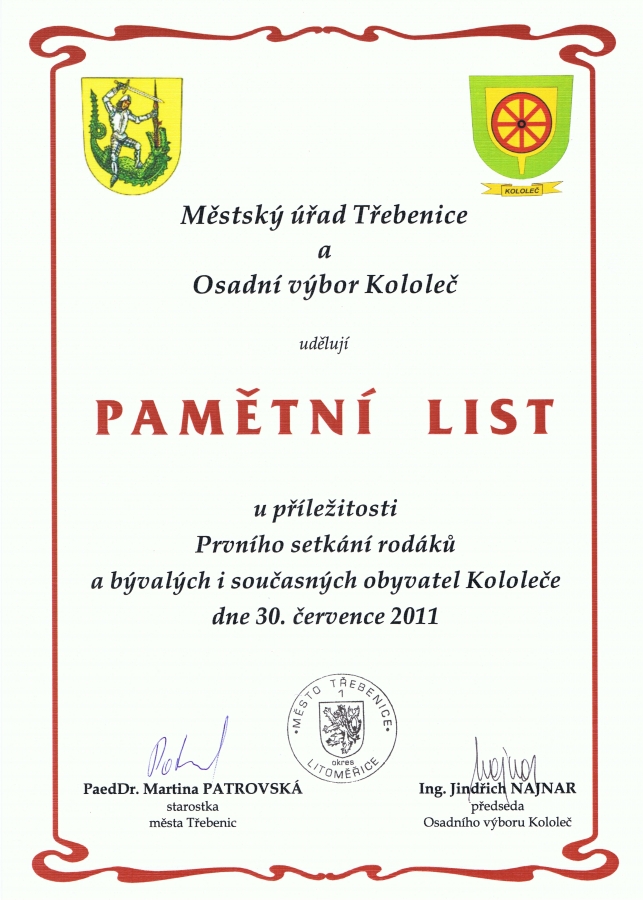 2011.07.30. První setkání rodáků a bývalých i současných obyvatel Kololeče